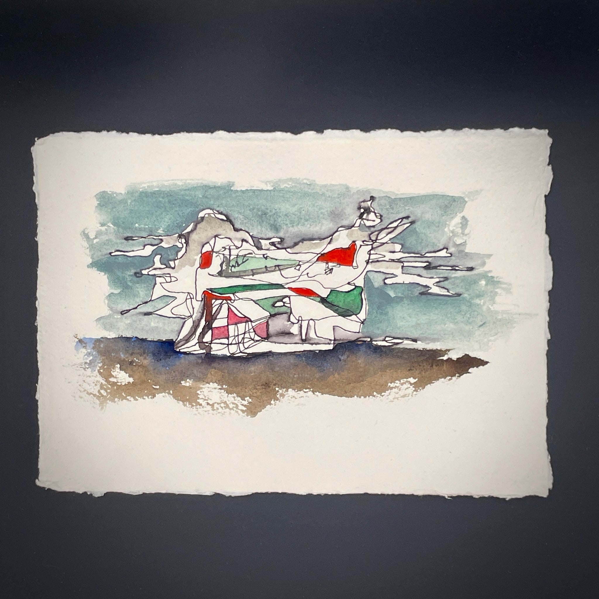 Ink, watercolor on Khadi handmade cotton rag paper made in Karnataka, South India